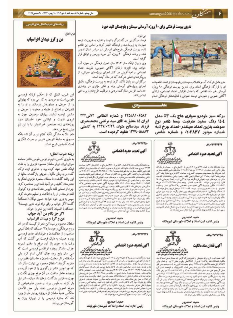 تیترهای خبری مطالب ویژه هفته نامه سمنگان (شماره ۵۱۶)