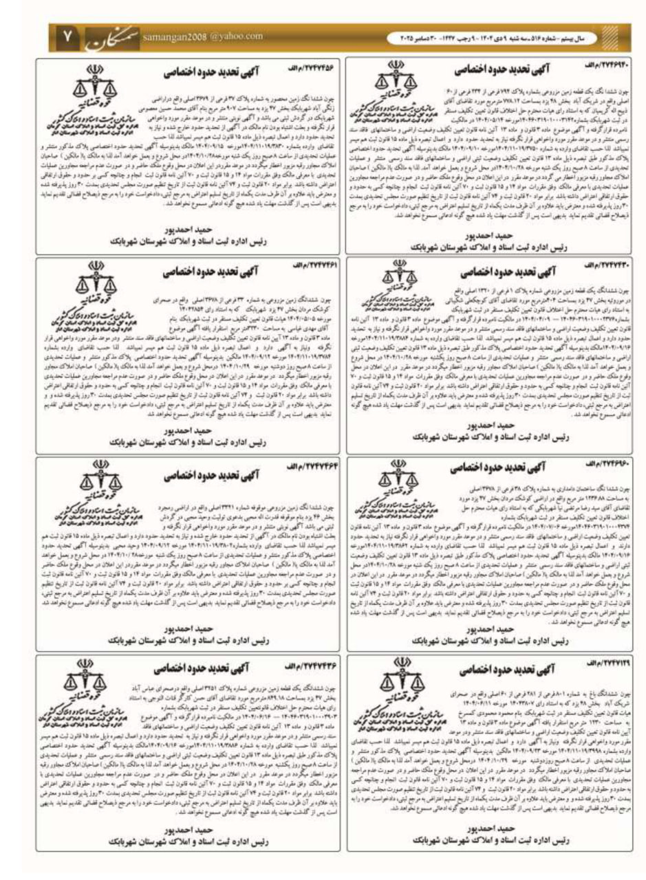 - ثبت ادعای مالکیت کاذب، مجازات پشیمانکننده در پی دارد: هشدار مدیرکل ثبت اسناد کرمان در مورد سامانه ثبت ادعا و جریمههای سنگین.